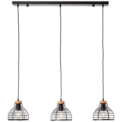 Brilliant Avia Pendelleuchte Metall Holz Schwarz Holz | Geeignet für 3x E27