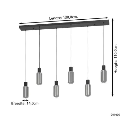 Eglo Pendelleuchte Maione Stahl Schwarz | IP20 - Geeignet für 6x E27