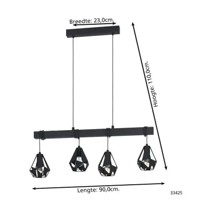 Eglo Pendelleuchte Townshend 7 Stahl Holz Schwarz | IP20 - Geeignet für 4x E27
