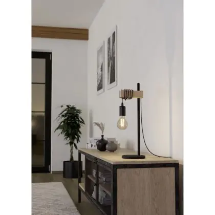 Eglo Tischlampe Townshend Stahl Holz Schwarz Braun | IP20 - Geeignet für 1x E27