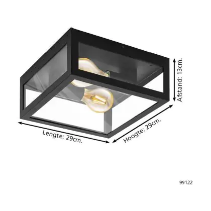 Eglo Wand und Deckenleuchte Amezola Stahl Schwarz | IP44 - Geeignet für 2x E27