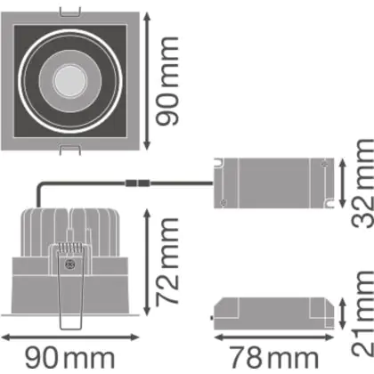 Ledvance LED-Spot Quadrat Dunkellight schwenkbar Weiß 8W 650lm 36D - 830 | Ausschnitt 83mm
