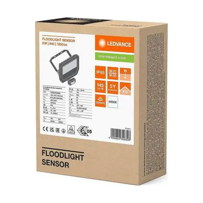 Mehrfachpackung 4x Ledvance Led-Scheinwerfer Aluminium Schwarz 8W 1200lm 100D - 840 Kaltweiß | IP65 - Bewegungs- und Lichtsensor - Symmetrisch