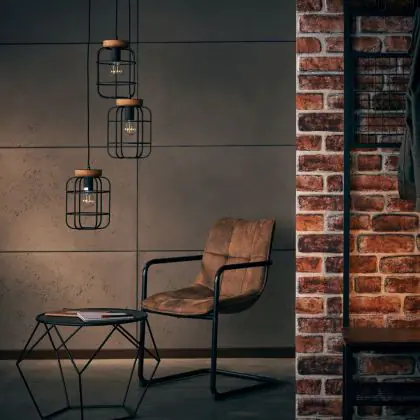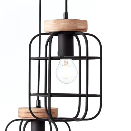 Brilliant Gwen Suspension Luminaire Métal Bois Noir | 420mm - Convient pour 3x E27