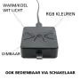La couleur de la lumière vous indique quelle couleur de lumière l'éclairage émet : blanc, coloré ou UV. Pour de nombreux produits de notre assortiment, il s'agit de blanc, disponible du blanc très chaud au blanc lumière du jour (exprimé en Kelvin). Avec une lumière colorée, vous avez deux options : 1. Une couleur fixe, comme le rouge ou le vert. 2. RGBW, ce qui signifie que vous pouvez déterminer vous-même la couleur de la lumière à tout moment : blanc ou coloré.