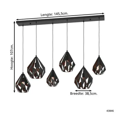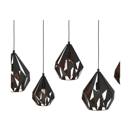 Eglo Suspension Luminaire Carlton 1 Échantillon Noir Cuivre | IP20 - Convient pour 6x E27