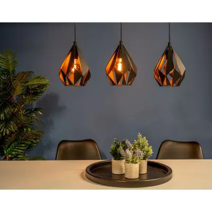 Eglo Suspension Luminaire Carlton 5 Échantillon Noir | IP20 - Convient pour 3x E27