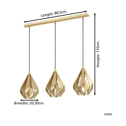 Eglo Suspension Luminaire Carlton Échantillon Dorée | IP20 - Convient pour 3x E27