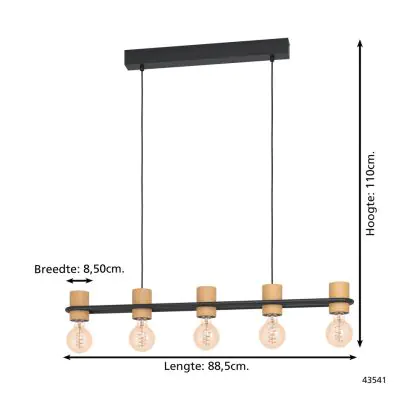 Eglo Suspension Luminaire Chieveley Échantillon Noir | IP20 - Convient pour 5x E27