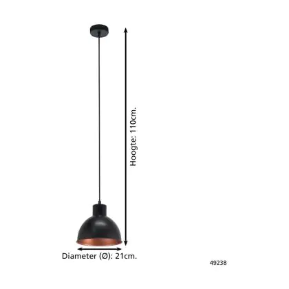 Eglo Suspension Luminaire Truro 1 Échantillon Noir Cuivre | IP20 - Convient pour 1x E27