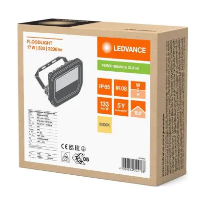 Le Ledvance Projecteur LED Aluminium Noir 17W 2200lm 100D - 830 | IP66 - Symétrique permet une économie d’énergie importante tout en conservant une excellente qualité d’éclairage. Sa technologie LED Intégré lui permet également d’avoir une très longue durée de vie pouvant aller jusqu’à 100000 heures. Ce projecteur LED est étanche, avec son indice de protection IP66 – Résistant à la poussière et à l'eau (fortes projections) lui permettant d’être hermétique à la poussière et à l’eau. Disponible dans la couleur 3000K - Blanc Chaud et un flux lumineux de 2200 Lm, ce projecteur LED est la solution idéale pour le remplacement de vos anciens projecteurs conventionnels.