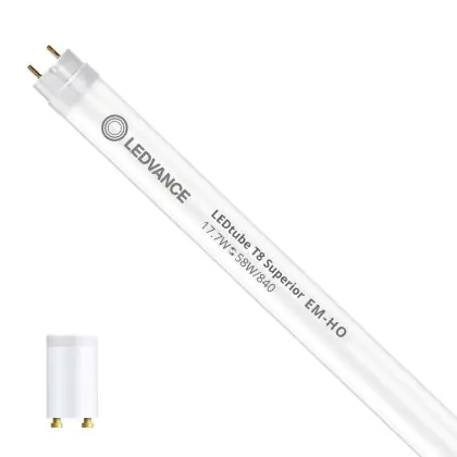 Ce tube LED Ledvance Tube LED T8 Superior (EM/Direct 230V) High Output 17.7W 3100lm - 840 | 150cm - Remplacement 58W est l’un des produits les plus éconergétiques en remplacement des tubes T8 classiques. Avec ce tube LED vous êtes donc assuré de sa qualité. Avec une puissance de seulement 17.7 W, ce tube LED a la même intensité lumineuse qu’un tube classique qui consomme 58 W.