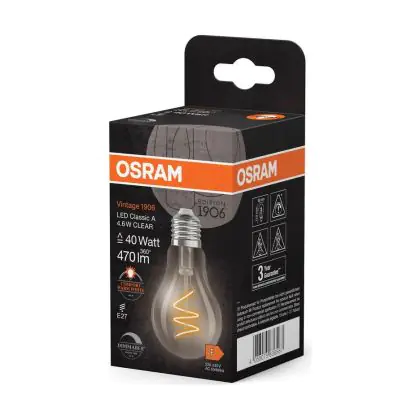 Cette ampoule Osram Vintage 1906 LED Classic E27 Poire Filament Claire 4.6W 470lm - 922 | Meilleur Rendu De Couleur - Dimmable - Remplacement 40W avec son efficacité lumineuse de lumen par watt vous permettra de profiter d’un éclairage de qualité. Avec sa durée de vie de 15000 heures, vous n’aurez pas à vous soucier de son remplacement avant quelques années.