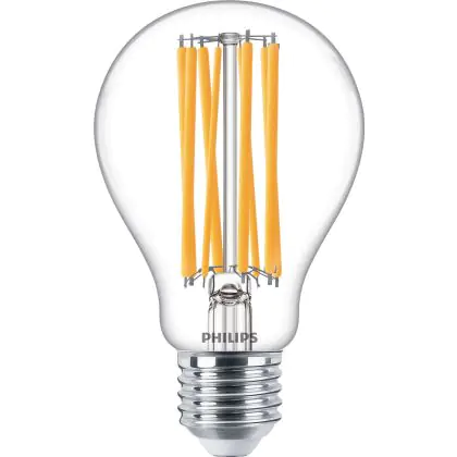Cette ampoule Philips Corepro LED Ampoule E27 Poire Claire 17W 2452lm - 827 Blanc Très Chaud | Équivalent 150W avec son efficacité lumineuse de lumen par watt vous permettra de profiter d’un éclairage de qualité. Avec sa durée de vie de 15000 heures, vous n’aurez pas à vous soucier de son remplacement avant quelques années.