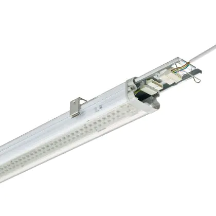 La réglette LED, Philips Réglette LED Étanche Pacific WT490C 51W 8000lm - 840 | 120cm - 3x Câblage Traversant est conçue pour remplacer les réglettes TL-D traditionnelles et permettant d’économiser jusqu’à 50% d’énergie. Très souvent utilisé pour l’éclairage d’entrepôts, d’usines, de parking et d’autres grands espaces extérieurs. Très simple d’installation, cette réglette de 120cm peut se fixer au plafond et au mur et projette 4000K - Blanc Froid, comme couleur de lumière. La Philips Réglette LED Étanche Pacific WT490C 51W 8000lm - 840 | 120cm - 3x Câblage Traversant dispose d’un indice de protection IP66 – Résistant à la poussière et à l'eau (fortes projections) à l’eau et la poussière et d’une résistance aux chocs IK08.