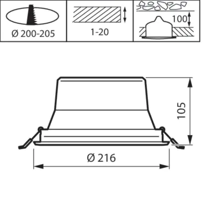 Description Philips Spot encastrable LED Coreline DN142B Aluminium Blanc 19.2W 2300lm 60D - 830 | Diamètre 200mm - IP20 - Dimmable - Blanc Réflecteur - Emergency
